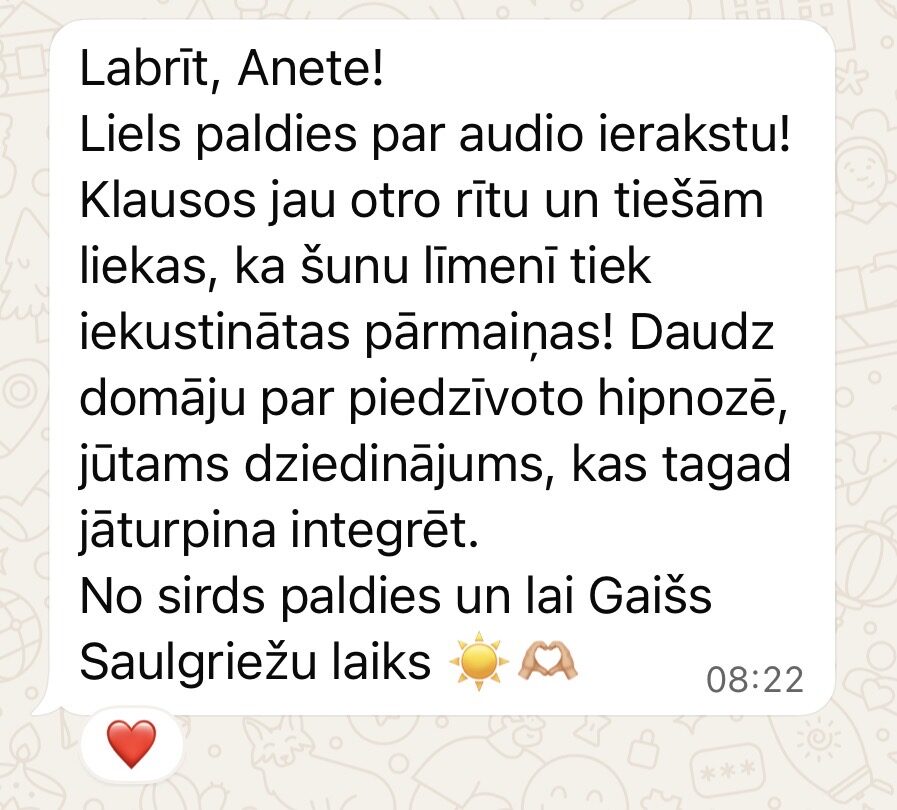 - personalizētu audio ierakstu, ko klausīties vismaz 21 dienu, lai nostiprinātu pārmaiņas