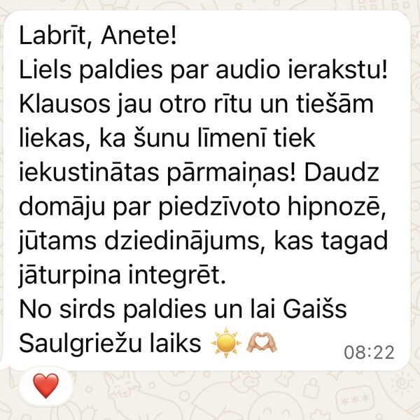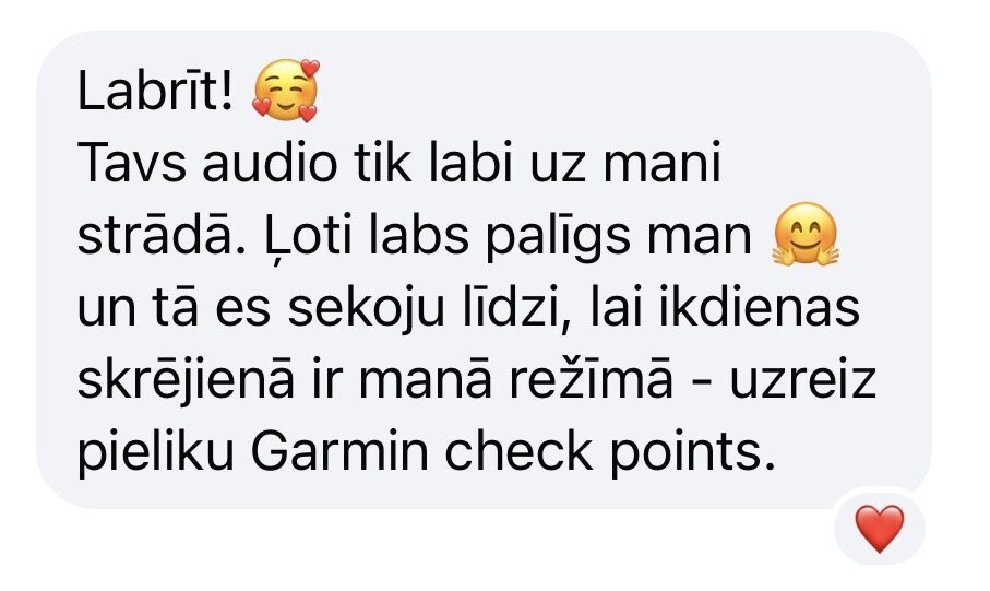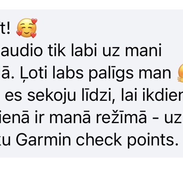 - 1x nedēļā saziņu WhatsApp, lai paskatītos, kā tev iet un noturētu kustību