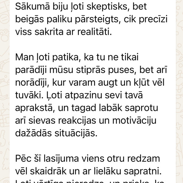 – kur ir jūsu spēka punkti,– un kur a ttiecībām nepieciešams vairāk apzinātības.