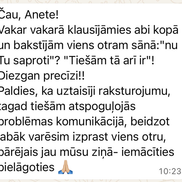 • vai kā 1:1 konsultācija online / klātienē. 60min. Var nākt viens no pāra vai abi kopā